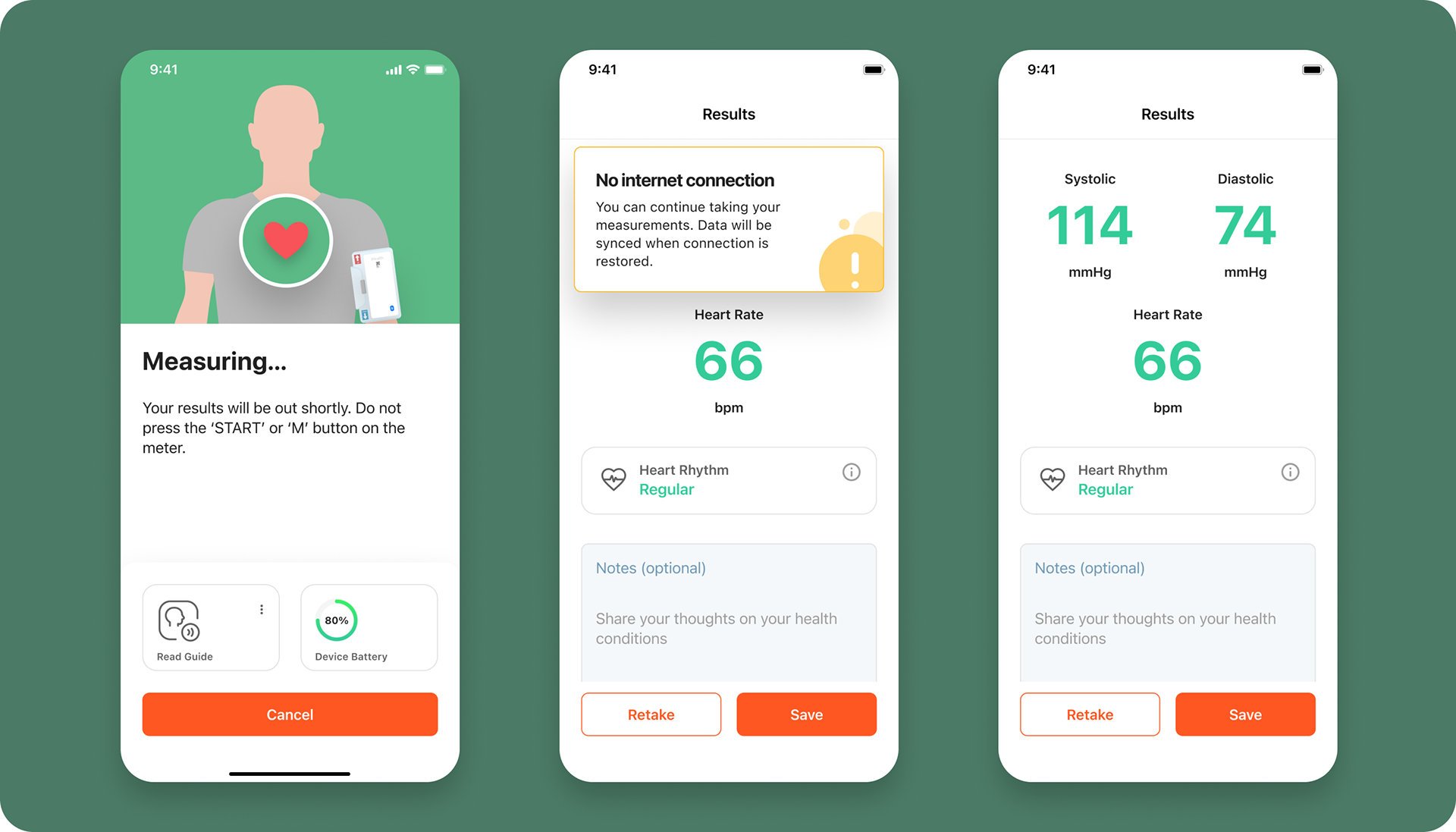 Patients: Continue taking their measurements even without an internet connection, ensuring uninterrupted care and peace of mind.